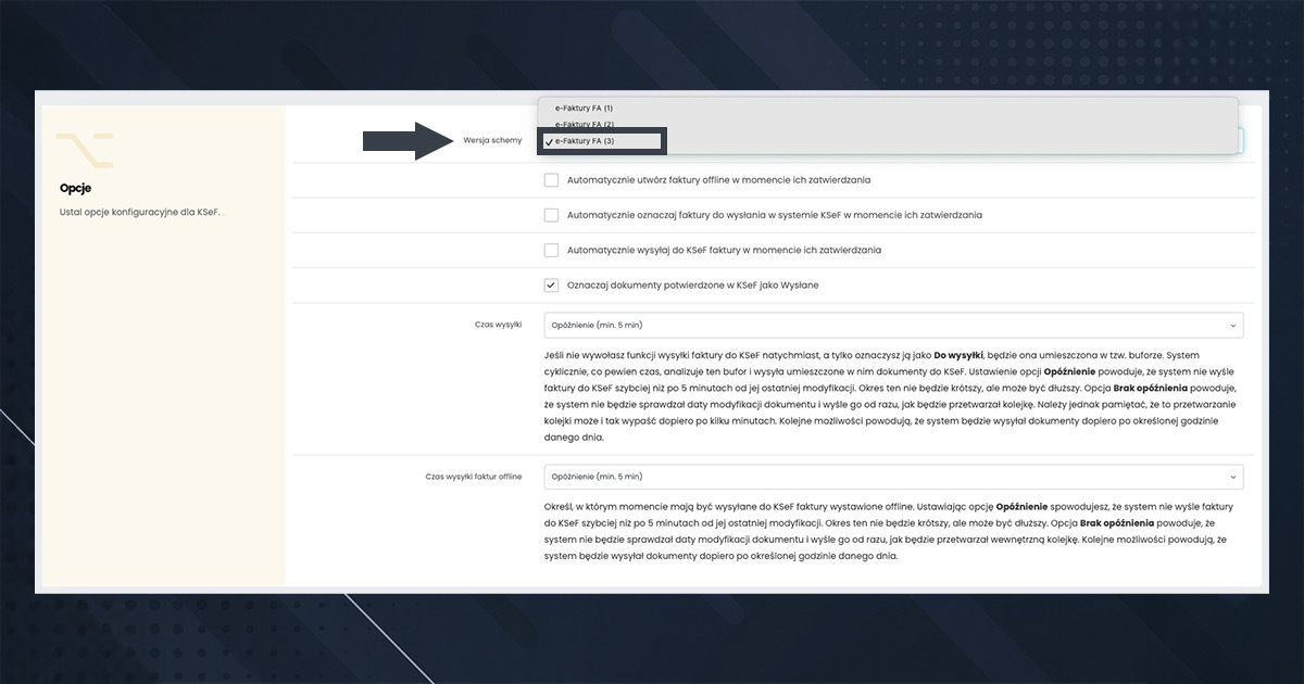 - Wybierz wersję schemy. Dla KSeF 2.0 to schema FA(3).
