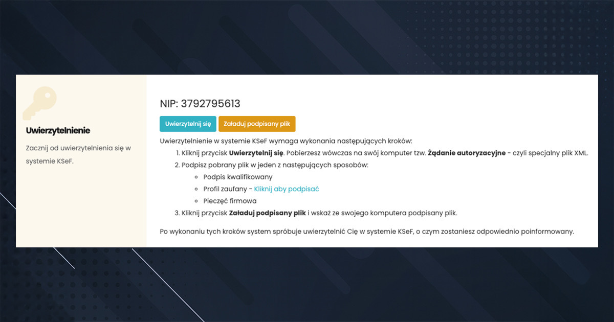 Następnie uwierzytelnij się w KSeF, korzystając z jednej z dostępnych metod: